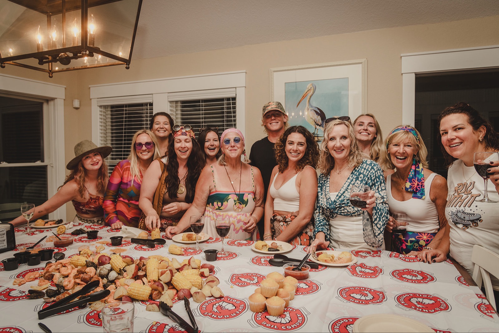 Sunset seafood boil party (70s theme!)